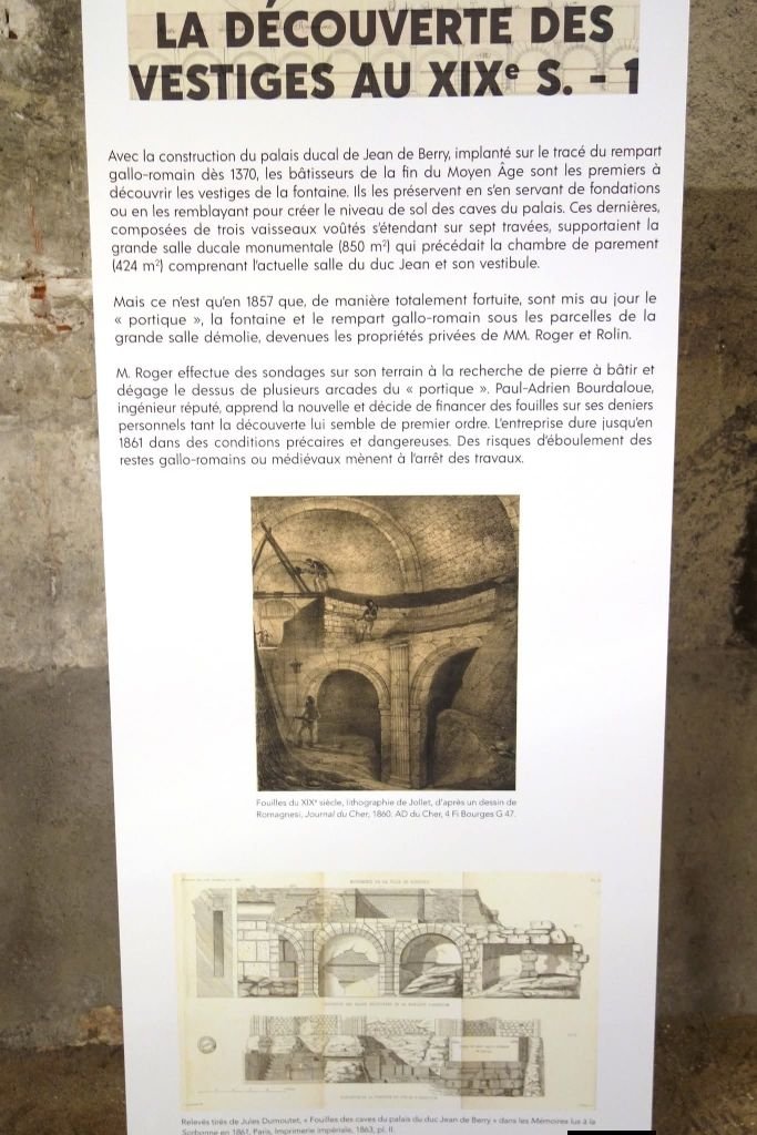 Ce lien vous permettra d’aller vers les pages du site archives https://www.archives18.fr/patrimoine/expositions-virtuelles/bourges-le-palais-du-duc-jean-2/la-fontaine-gallo-romaine