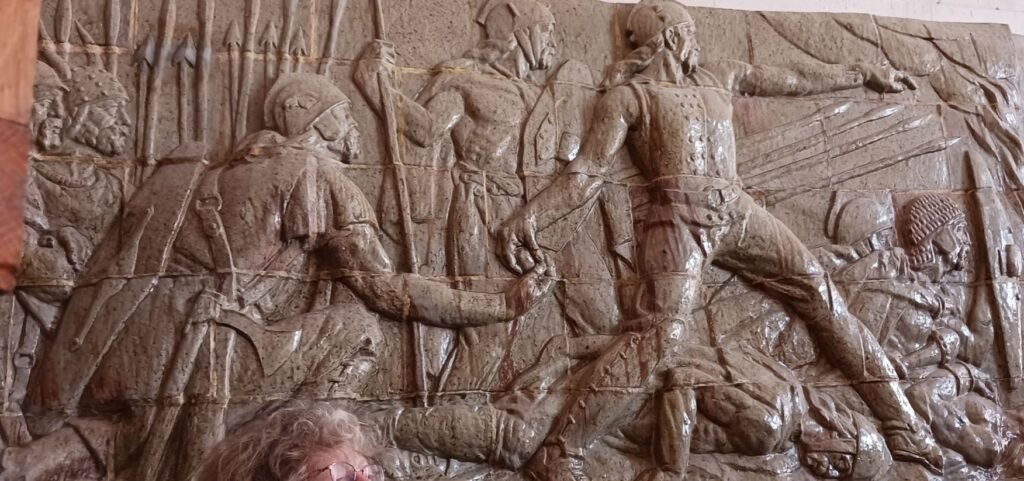Isabelle Renault a transporté son auditoire, à l’époque où Avaricum était l’une des cités les plus riches et les plus vastes de Gaule Aquitaine . N’oublions pas que Bituriges signifie  »les maîtres du monde ». Après le choc du siège de Jules César, en 52 av J-C (siège qui fut terrible – population affamée et massacres d’une rare violence, représenté par la fresque qui se trouve dans l’entrée de l’Hôtel de ville) , la ville s’est métamorphosée.